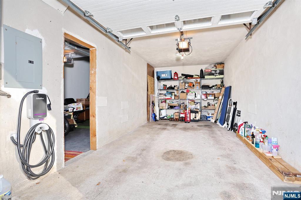 Location, location, location! Expanded split level at the end of a dead end street backing up to woods. This home features a spacious entry foyer leading to a large expanded family room with a wood burning fireplace and sliding doors to a patio and large fully fenced backyard. Upstairs a couple of steps is a light filled living room, formal dining room and eat in kitchen with newer LG appliances. The top level features a primary bedroom and full bathroom, 2 additional bedrooms and a full bathroom. This home is a Smart Home with the Heater/CAC, Security System and Sprinkler System controlled via apps. 2 car expanded garage, shed, 100x100 level property. *** Updates within the last 4 years include vinyl 6' fence, LG kitchen appliances, Samsung washer & dryer, AC system (condenser and handler), family room flooring, SimpliSafe security system (all entry doors and windows, motion sensors on each floor and cameras) and EV charger. 2024 front lawn & garden sprinkler system. Conveniently located close to the Pascack Valley train line, shopping and restaurants, malls and highways. Convenient, private and quiet!