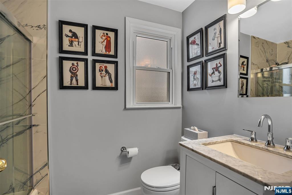 Recently renovated center hall colonial on a beautiful tree lined street in Teaneck. First floor features entry foyer leading to formal dining room and formal living room. Chefs kitchen with double stainless appliances that leads to breakfast room and family room that overlooks large deck and private backyard. Upstairs is a master bedroom and master bathroom. Three more large bedroooms and full bathroom. Basement is finished with rec room and laundry and access to two car garage. Located near parks and houses of worship.