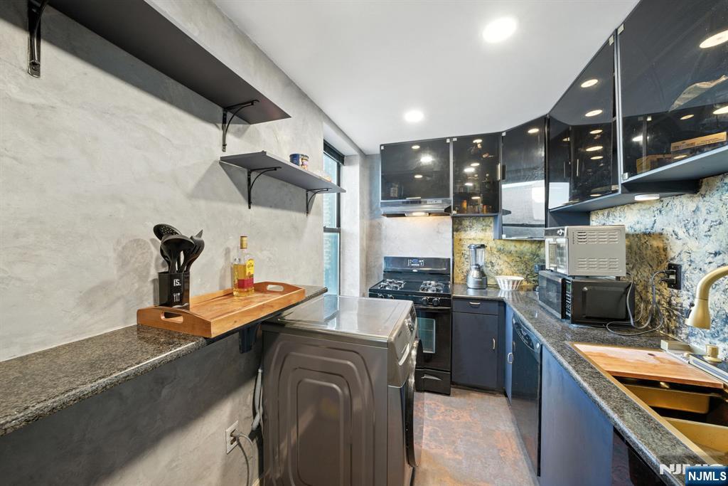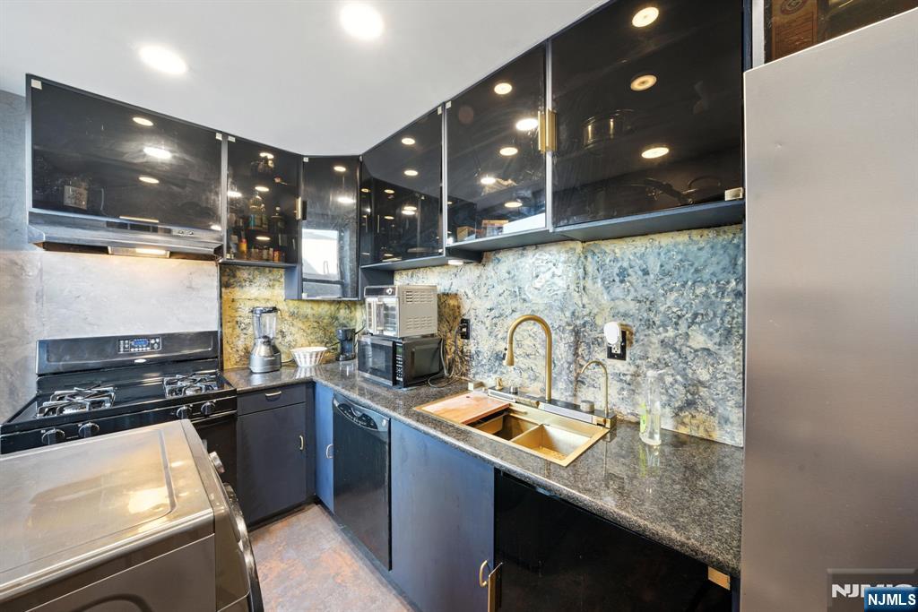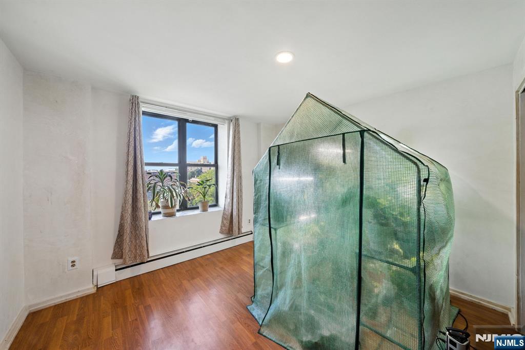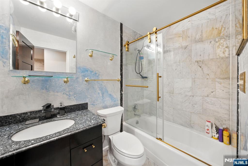 Step into sophisticated city living at Gothic Tower, a pre-war gem walking distance to the Journal Square PATH Station. This expansive 1-bedroom, 1-bath residence offers nearly 1,000 sq ft of modern elegance wrapped in timeless charm. Inside, you’ll find beautiful flooring, stunning Venetian plaster marble walls, and natural stone walls that add texture and warmth. A smart voice and phone-enabled colored LED recessed lighting system lets you set the mood throughout the space. The fully renovated kitchen features translucent acrylic cabinet doors, LED-lit interiors, floating shelves, and new appliances—perfect for stylish everyday living. The updated bathroom showcases gold accents throughout. Redwood polyurethane-finished doors, mirrored living room closet, and gold outlets add rich design details throughout. In Gothic Tower, enjoy a 24-hour doorman, fitness center, courtyard, and laundry room—plus unbeatable access to St. Peter’s University, local cafes, parks, and NYC via PATH.