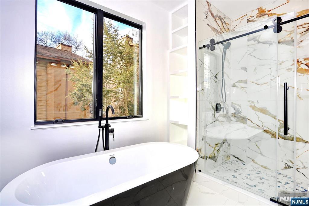 This stunning triplex offers breathtaking views of the mountains, river, and NYC skyline. Located on a quiet dead-end st., it provides a peaceful environment. The property features a 3-car garage and 3 parking spaces.4,000 sf, this spectacular multi-level townhome is built on a solid poured concrete foundation and 12-inch-thick concrete walls, ensuring durability. FR w/ porcelain tile & bath - Private backyard with patio. Elegant staircase to the 2nd FL. Open LR with breathtaking views of the Hudson River and NYC skyline through a large picture window- Open kitchen featuring an oversized quartz island and S.S appliances, Full DR& The third floor includes a large primary bedroom w/ a full bath, a sep. shower room, a soaking tub, and a walk-in closet. There’s also a large two-bedroom suite that comes with its own bathroom.- The fourth floor can be used as a master suite with an open layout, summer kitchen/wet bar, and sliding glass doors that lead to a rooftop deck. The deck is outfitted with glass railings, making it perfect for entertaining and enjoying the fantastic views. Additional features of this custom-built home include oversized Anderson windows, recessed lighting, a separate garbage room, all-paved parking lots, a baseboard heating system with 6 zones & 2-zone CA, CV System. Conveniently located just minutes from the Edgewater/NYC Ferry and the George Washington Bridge, this property is also close to shopping, transportation, and restaurants.
